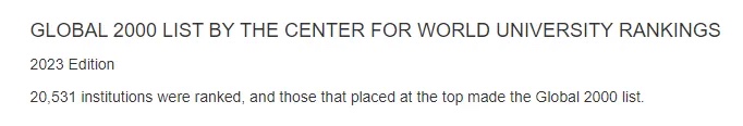 5月15日,世界大学排名中心 (Center For World University Rankings,简称CWUR) 发布了2023年世界大学排名。这份榜单列出了20531所高校和研究机构中的前2000名。